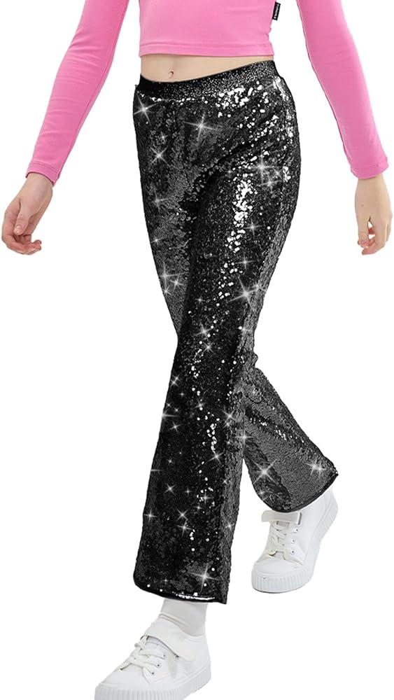 ✨Shiny & Chic Look: With their eye-catching sparkles, these pants will instantly elevate any ensemble, adding a touch of glamour to your girl's outfit. She'll shine and stand out wherever she goes! Give your little fashionista a glamorous and comfortable wardrobe staple with these glitter flared pants.