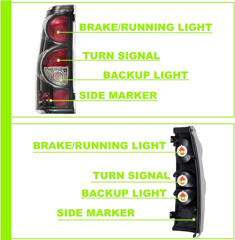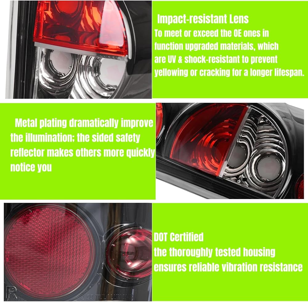 【 DOT / SAE COMPLIANCE 】— Replaces Original (OEM) Part: Left-19169017, 19169004; Right-19169018, 19169005; ABPA Partslink No.: Left-GM2800173, GM2800186, GM2800174; Right-GM2801173, GM2801186, GM2801174; These Tail Lights will not only improve the appearance of your car, but also conform the strict guidelines of DOT and SAE compliant.