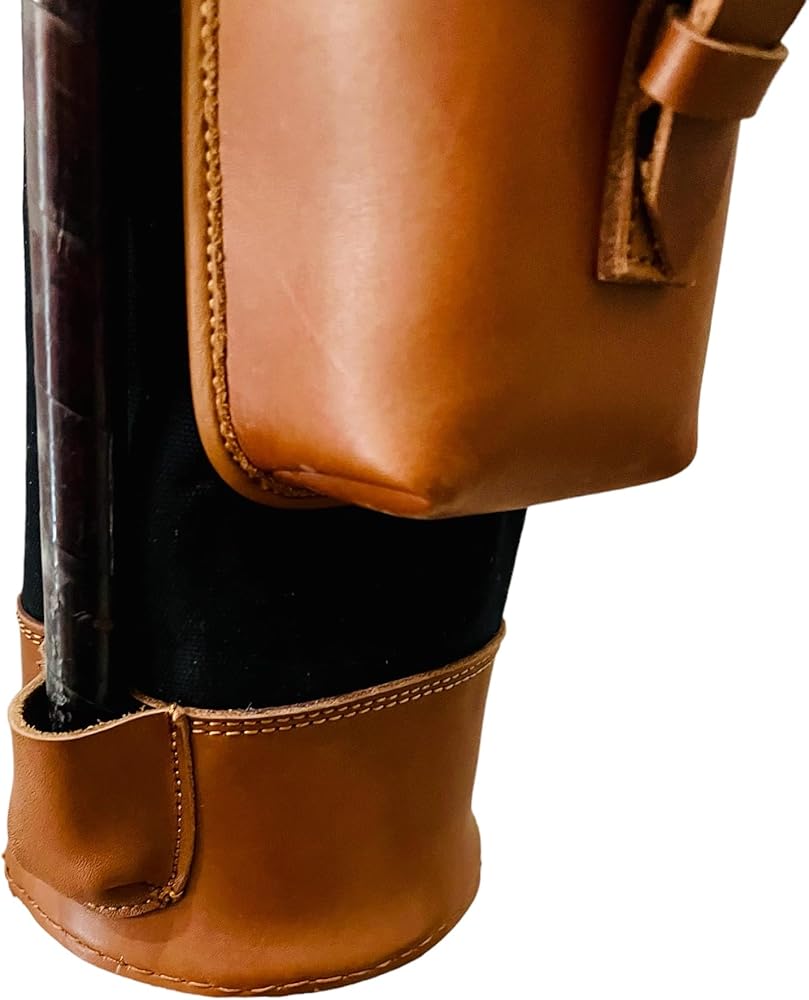 TAN CAMVAS & LEATHER GOLF CLUB CARRYING BAG I RETRO - This offer is only for the golf club bag. Clubs are not in the deal - Vintage Style Leather Golf Club Carrying Bag. Size: 32" in length and 4" in diameter. Capacity: It can easily handle 6-10 clubs. Color: Tan Material: Thick canvas lined with artificial fur and Cowhide 2.10 mm thick leather. Two pockets in front and a leather strap to hang it on your shoulder. Condition: Never used but is finished to look old and all hand stitched.