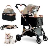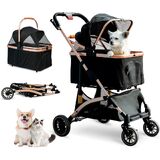 Pet Stroller, Dog Strollers with Removable Carrier, Pet Stroller for Cats and Small and Medium Dogs, 4 Wheels Travel Jogger for Puppies, Pet Gear Stroller with Large Storage Basket, Black