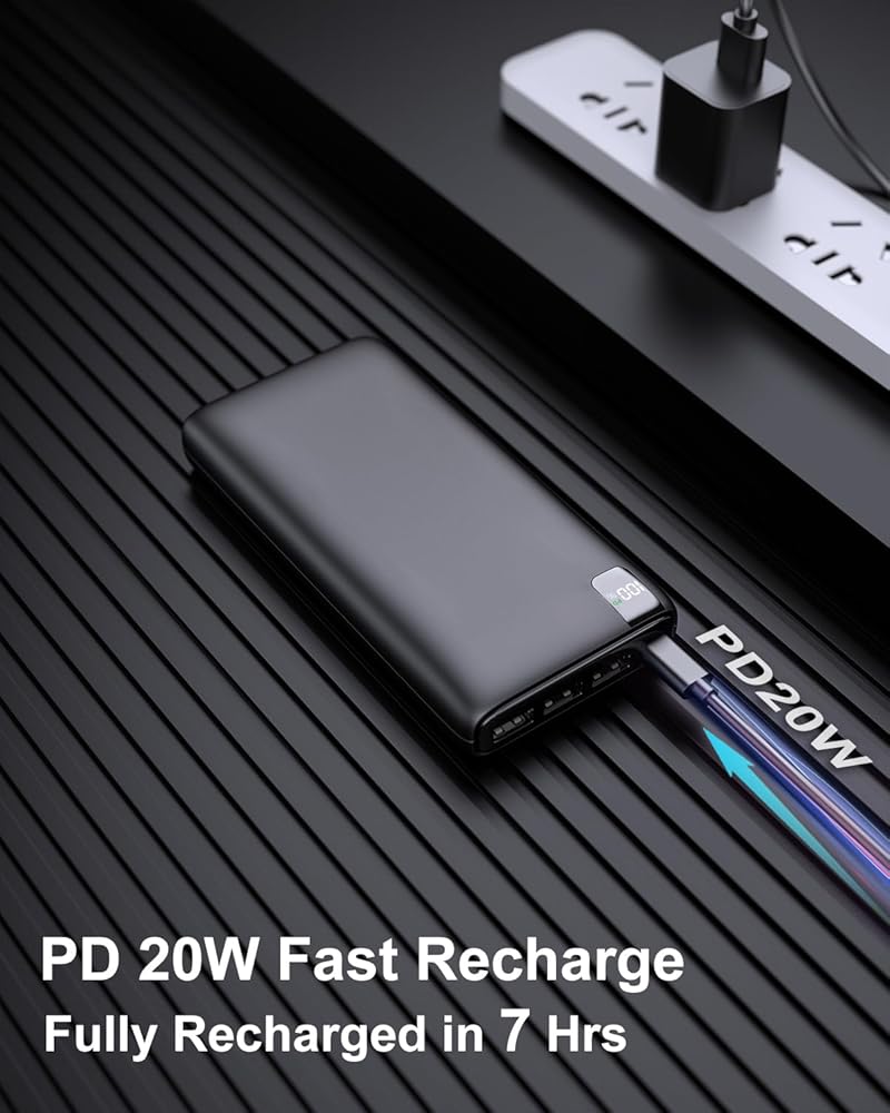26800mAh Huge Capacity: 26800mAh power bank can charge most phones for 8-10 times and other USB devices multiple times for an average of 9 days of unrestrained usage per charge, and no need to worry about losing contact with anyone due to out of power.