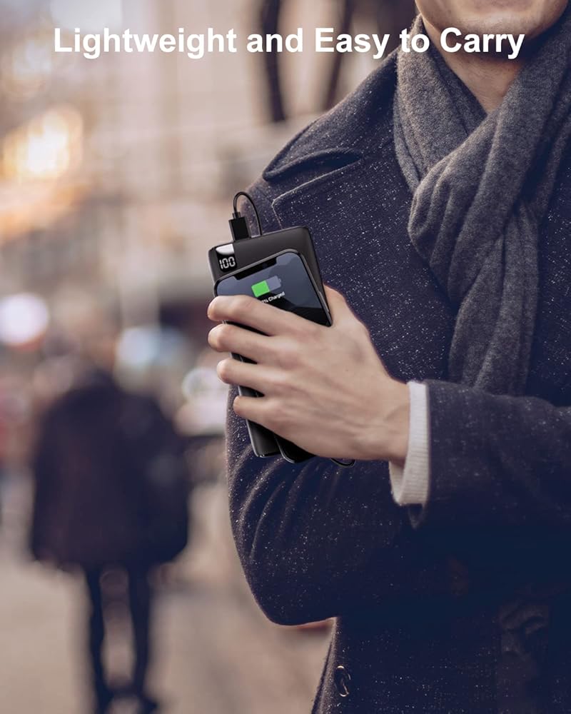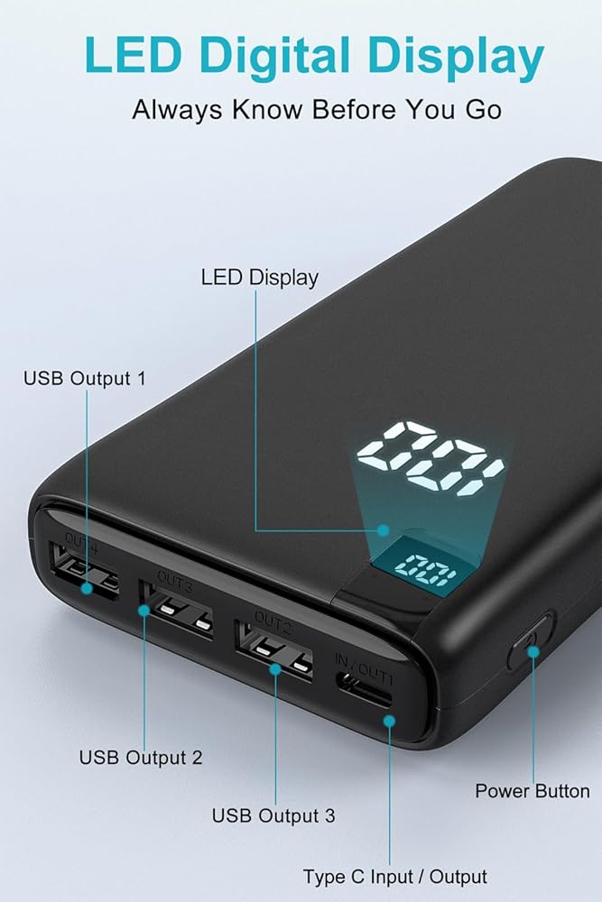 Fashionable LED Digital Display: This unique portable charger features an excellent LED indicator, percentage-based readout shows you the precise remaining power. No more guessing about the remaining power and when to recharge. Know before you go!