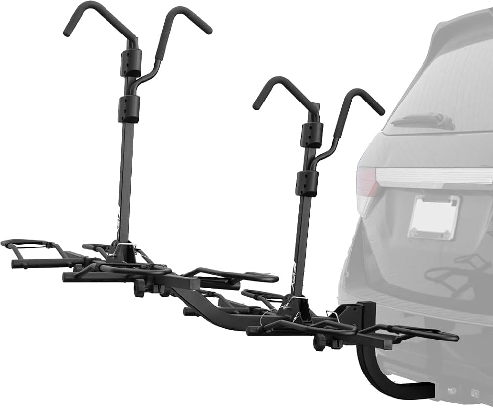 BV Bike Carrier Hitch Rack provides the most effortless way to transport your bikes. The tilt backward design enables users to open the rear gates without detaching the hitch rack. Each bike is secured by the three-point connection system – two tray-style arms on the bottom and one vertical arm on top. This keeps the bike from swaying during travel.