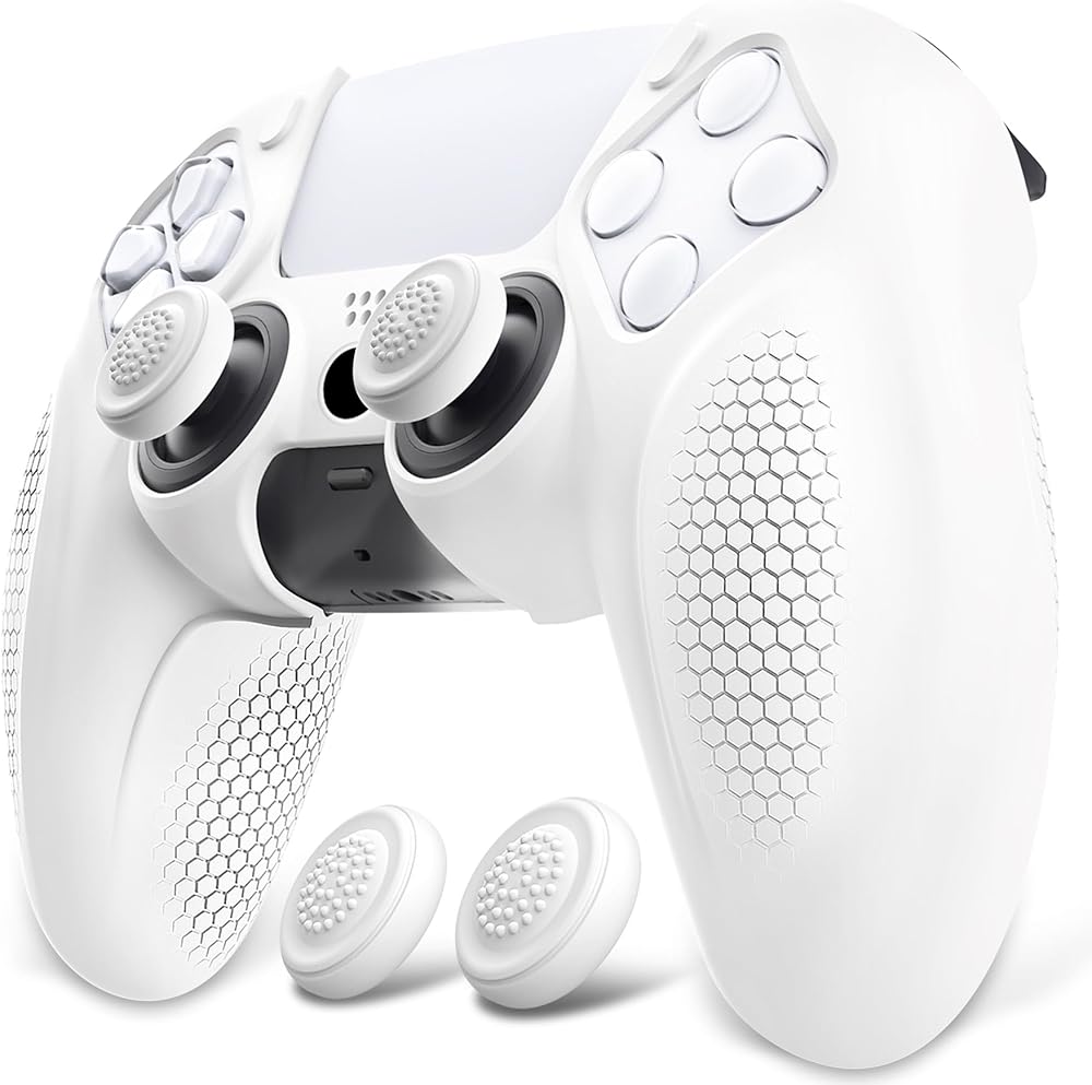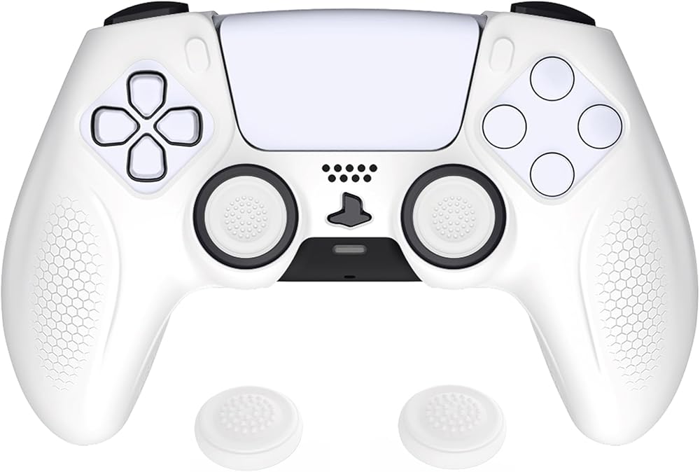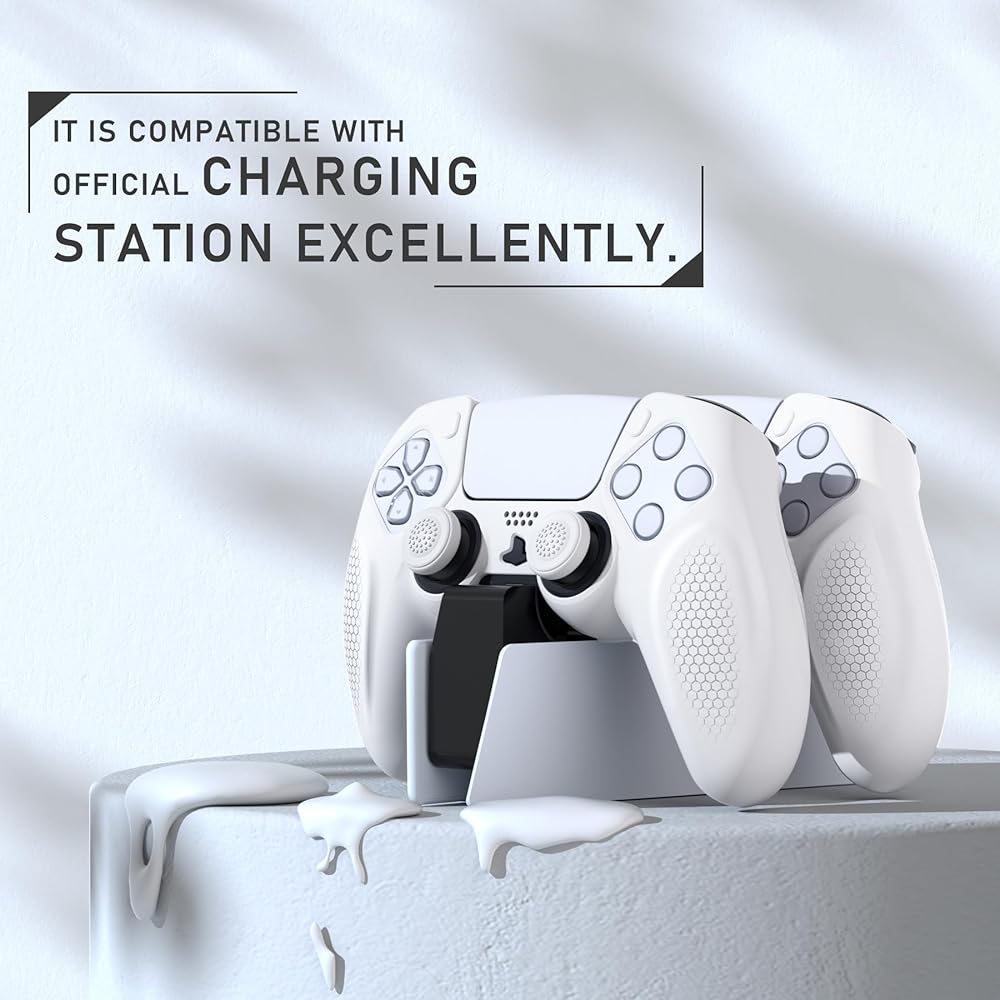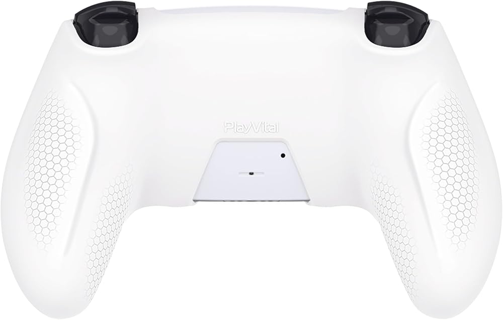 PlayVital Ninja Edition Anti-Slip Silicone Cover Skin for ps5 Wireless Controller, Ergonomic Protector Soft Rubber Case for ps5 Controller Fits with Charging Station with Thumb Grip Caps - White