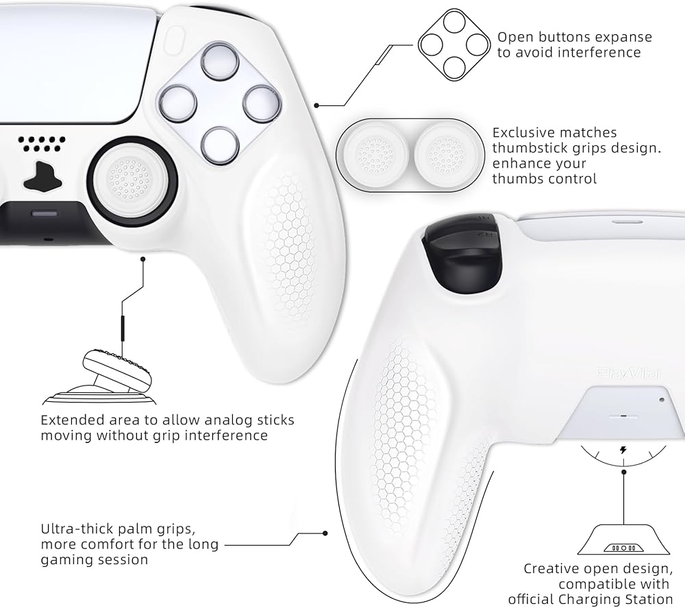 Precisely cut rubber cover skin provides all around and reliable protection for ps5 controller, preventing scratches, dirt, falling, spilling and grease caused by daily use