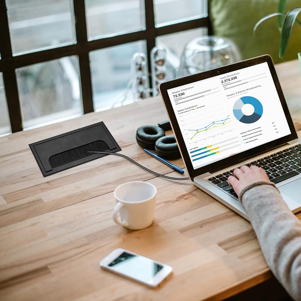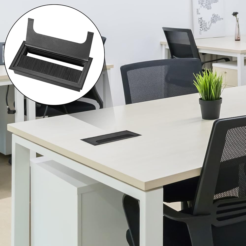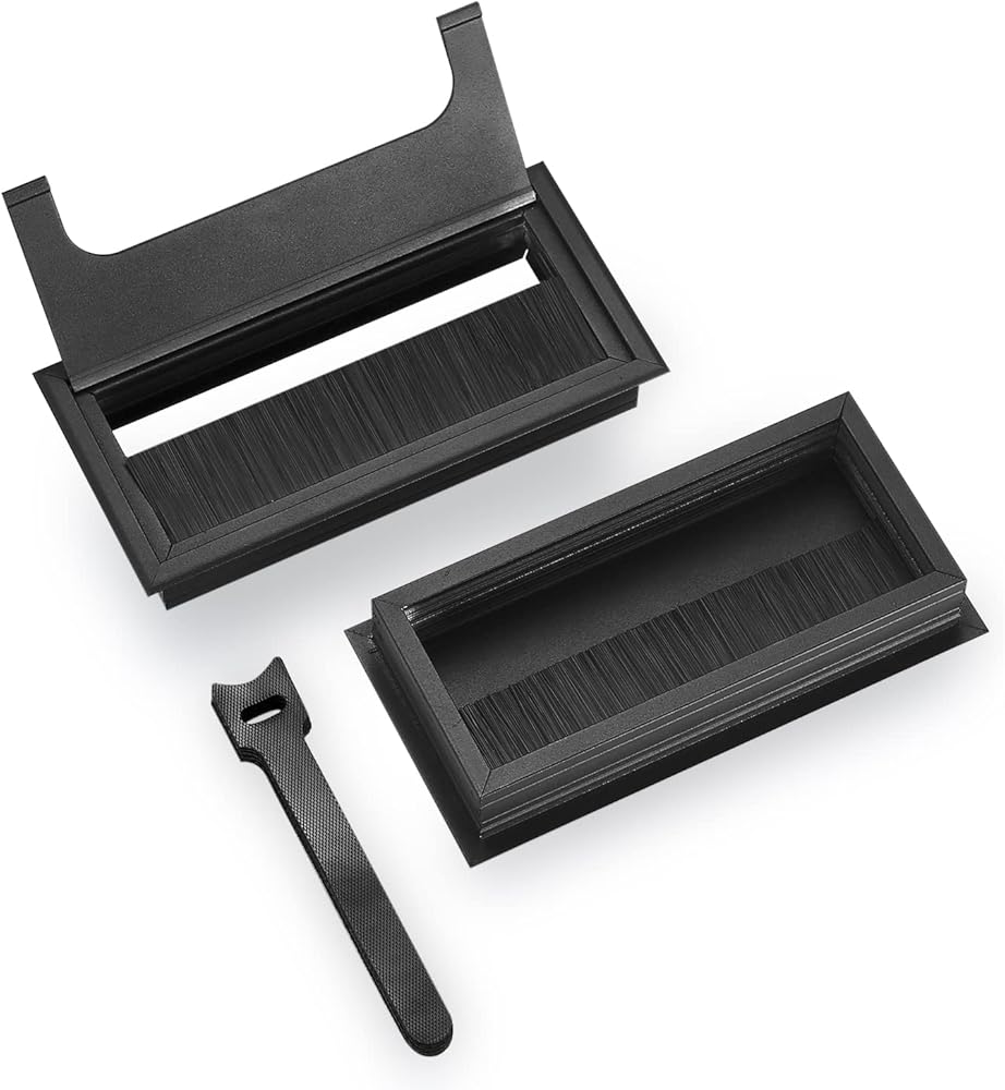 br> ♥ The computer desk wire hole cover is designed with a wide opening, the cables can pass through easily. br>br> ♥ Cable grommet with hinged cover and flexible brush seal for easy daily use.