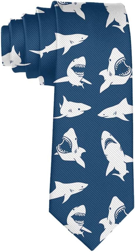 Fashion 3D Printed Shark Fierce Blue Mens Ties - Neckties Gift for Men, Boys, Teens