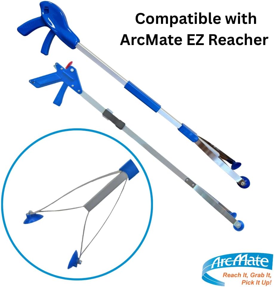 ArcMate EZ Reacher Replacement Gripper Cups - Food Safe Indoor Reacher Grabber Tips Part for Repair - Heat Resistant Silicone Cups with Locknuts, Blue, 2 Pairs (4 Cups)