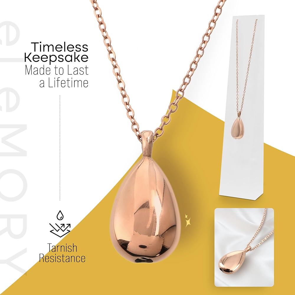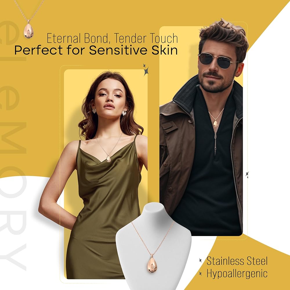 Elemory Cremation Ash Necklace: Our exquisitely crafted stainless steel cremation necklace is a timeless tribute to honor your cherished loved ones. Meticulously fashioned from durable stainless steel, this urn necklaces for ashes for women ensures lasting memories in a stylish design. Available in elegant rose gold, sleek black, or classic silver, our creation memorial caters to diverse styles with grace. This cremation ashes jewelry comes with a sophisticated stand crafted with the utmost care for you to keep the necklace when not in use. Our pet urn necklace simplifies the process, ensuring secure storage of ashes discreetly and seamlessly. With its versatility in color options and elegant design, this ash pendants cremation jewelry becomes a family keepsake, catering to various members and occasions with personalized significance. Whether for human or pet memorials, this versatile ashes keepsake necklace holds the essence of cherished memories close to your heart, making it the perfect thoughtful and meaningful gift to commemorate the lives of those held dear. The ashes necklace for women is suitable for various occasions, such as funerals, memorial services, and other special events. About Us: Elemory is a small, family-owned business. We love designing convenient and thoughtful products that you can use in your daily life. This necklace ashes holder is an effort to do just that. We hope you love our pet urn jewelry as much as we do. Thanks for supporting our family business!
