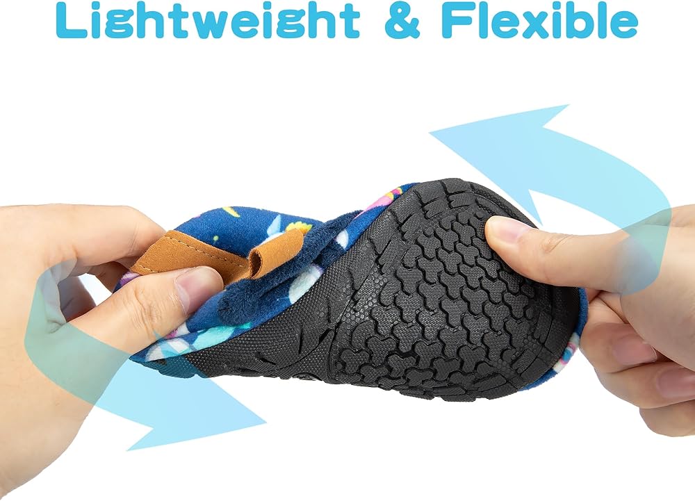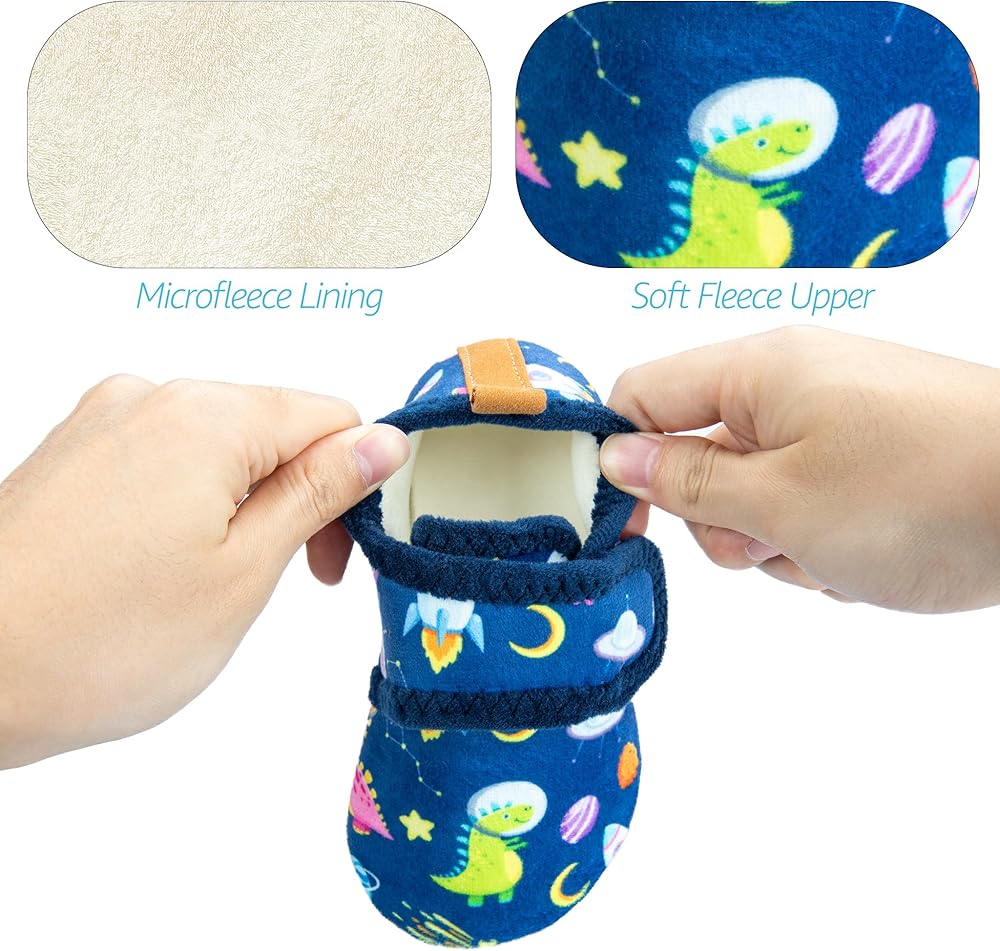 SOFT UPPER AND MICROFLEECE LINING: The upper made of cozy Teddy velvet, the inside lining is pretty soft and skin-friendly, it can wrap your child's feet tightly, keep kid's feet warm and comfort all the winter.