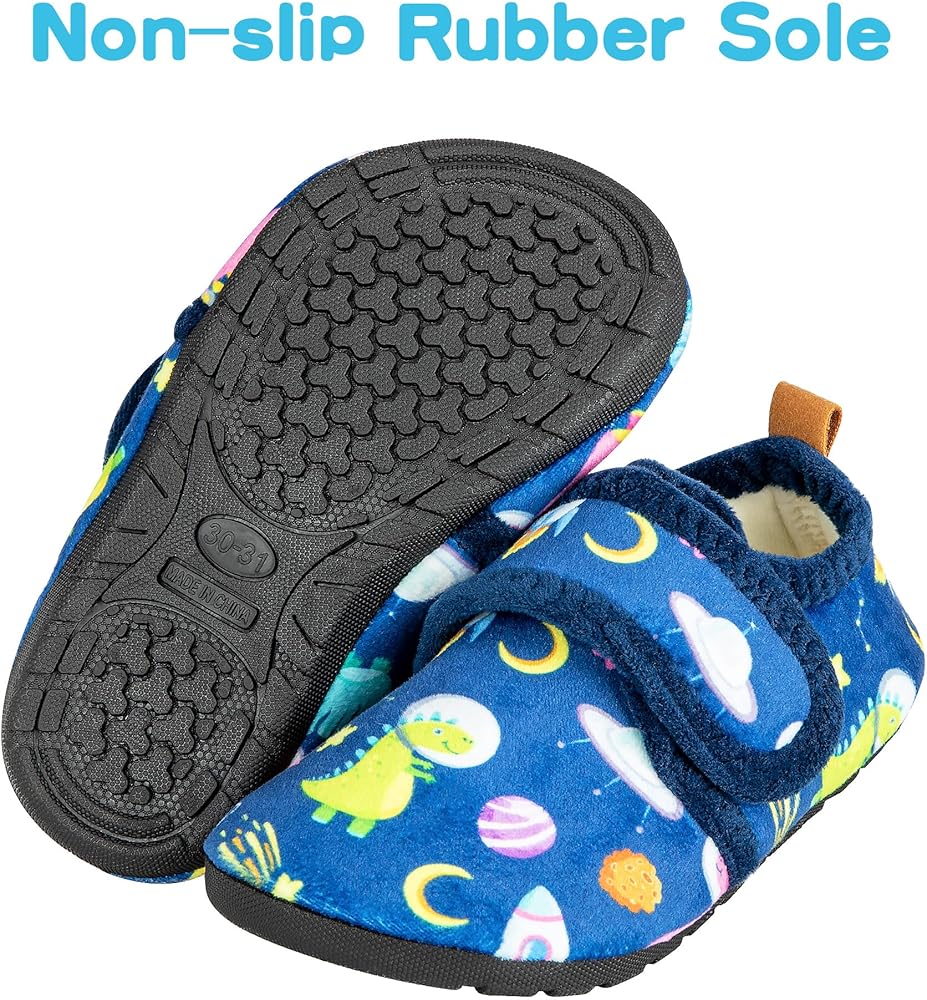 SIZING and CARING TIP: All OBBYCO slippers fit snug for most customers, so if your kids have wide feet or are between sizes, we suggest sizing up. See the size chart for more details. These closed toe slippers are also machine washable, which makes caring for them easily. Machine Wash Cold, avoid Long Time Soaking and Scrubbing.