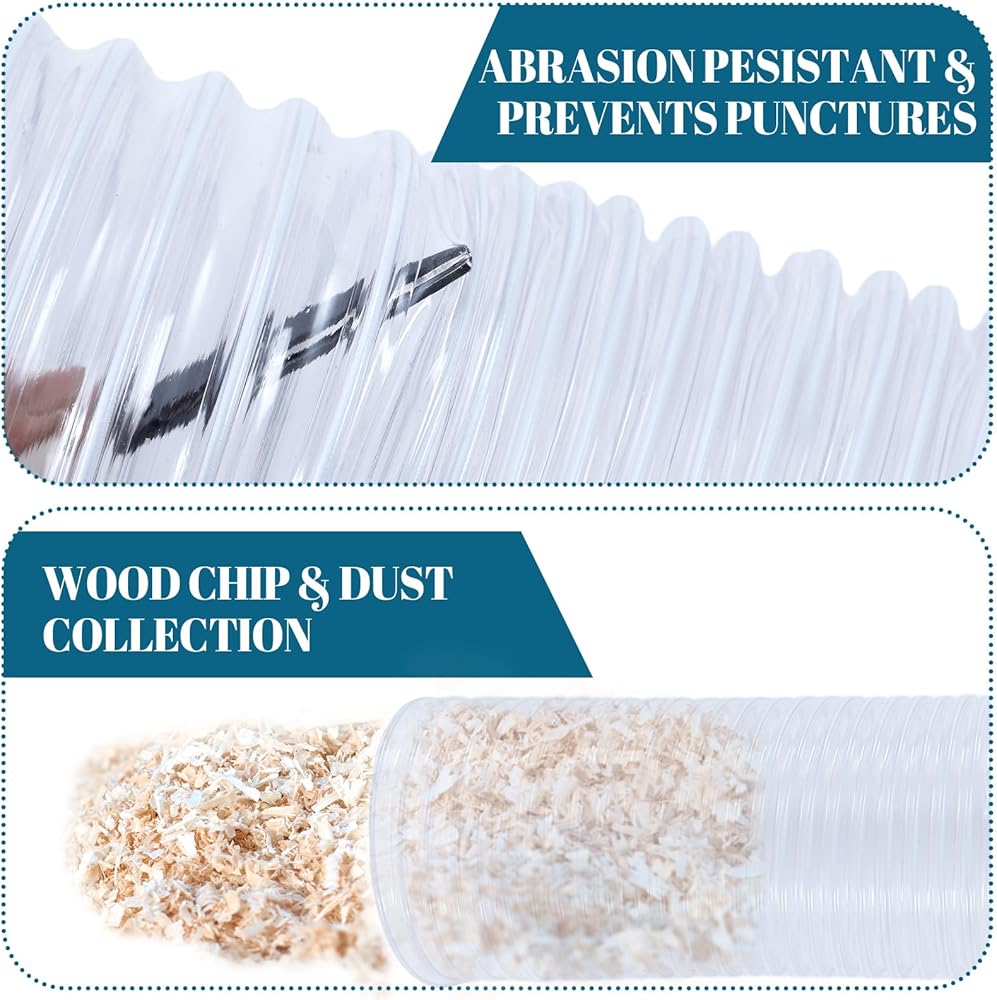 Our PVC dust hose set equipped with 8 stainless steel clamps, ensures a snug fit, minimizing air leaks and ensuring optimal dust collection performance.