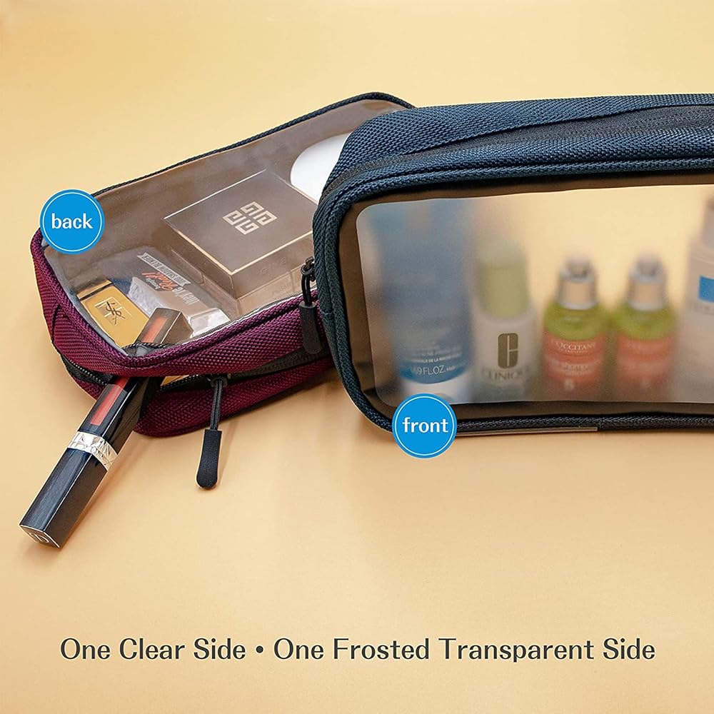 ✈️ Unique exterior color design with one side clear and one side transparent frost. Clear side is for easily spotting and accessing to your items while the transparent frost side is for protecting your privacy