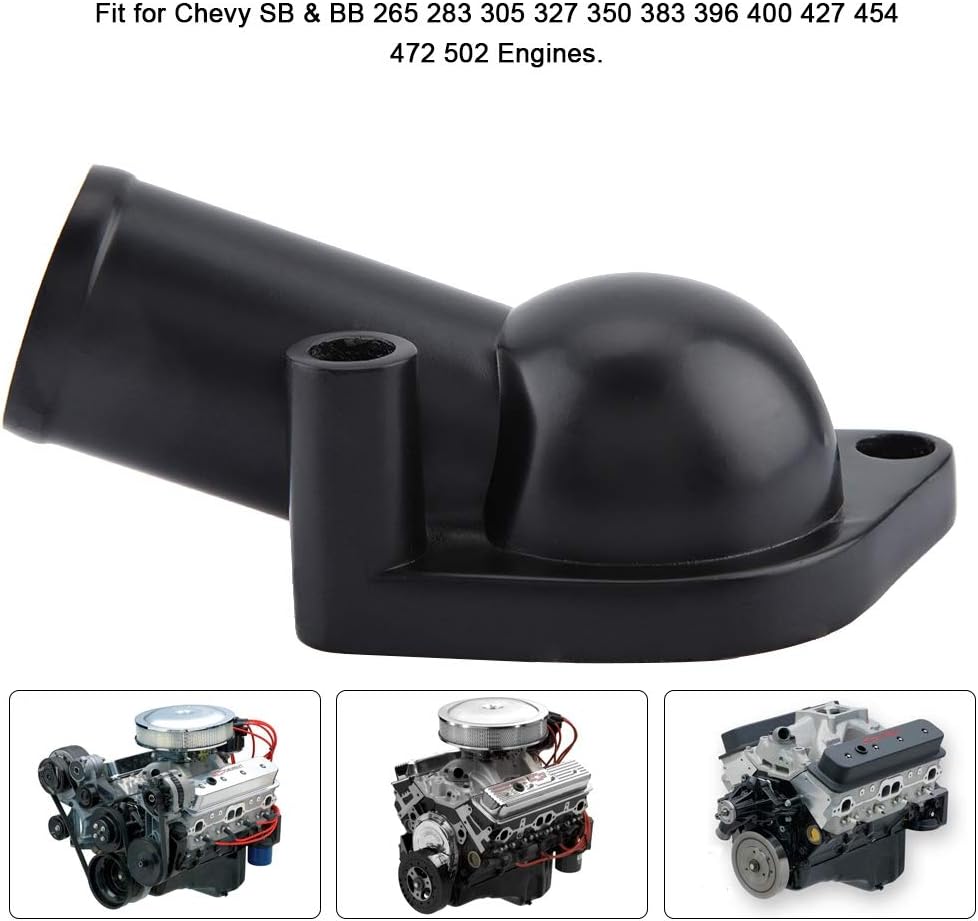 【Versatile Compatibility】: Small block thermostat housing perfect fit and operation for Chevy SB & BB 265 283 305 327 350 383 396 400 427 454 472 502 engines, showcasing its versatility and comprehensive applicability.