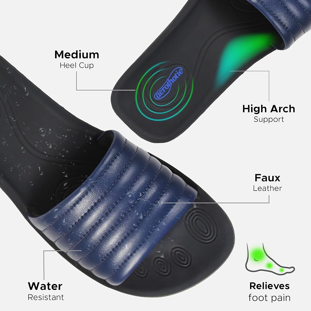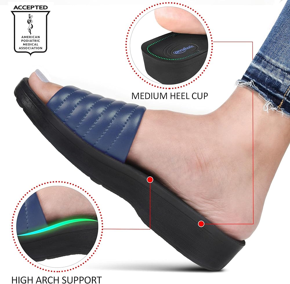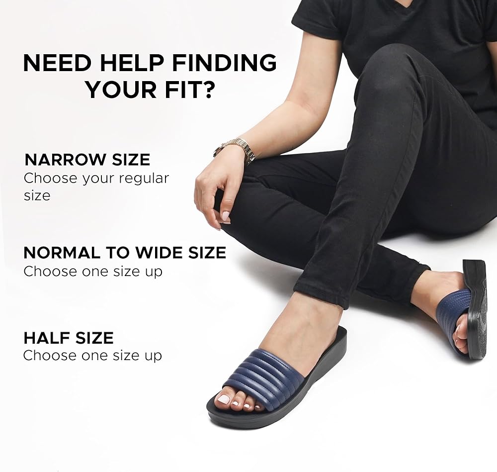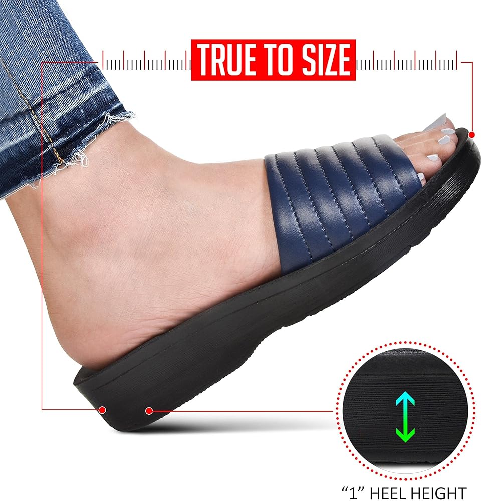 Arch supportive: The supreme quality construction of the slide sandals women promotes the well-being of the feet. Soft sole with ergonomic curves saves your feet from terrible pain. Women who suffered a hard time with plantar fasciitis pain can now get rid of it.