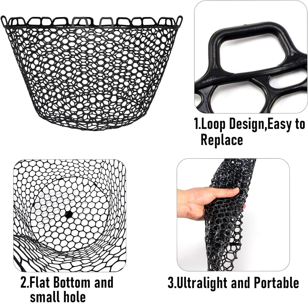 PREMIUM FISHING REPLACEMENT NET: High-quality knot-free silicone fishing nets won't harm the fish's fins and gills. No need to worry about snap hooks and tangled nets, leaving more time to enjoy your fishing time.