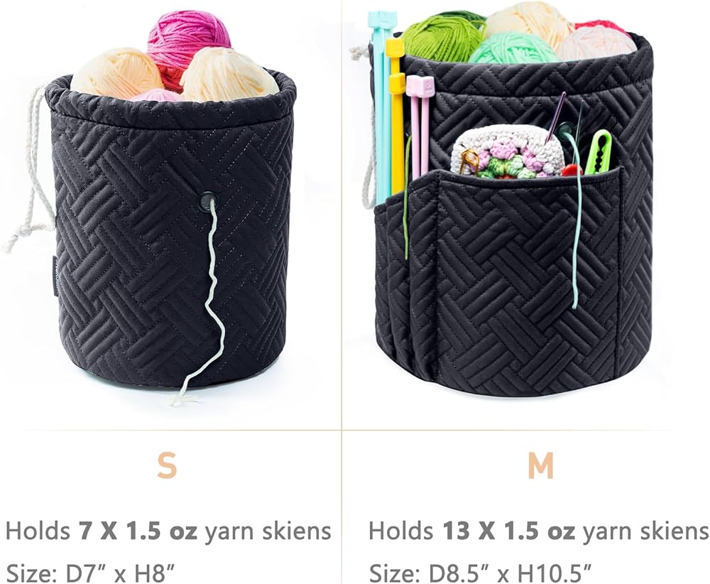 🧶【KNIT ON THE GO】– You will use our drawstring yarn bag ( D8.5"XH10" ) to store yarns, unfinished items, and you can also get a FREE knitting & crochet accessories case for crochet accessories, short knitting needles, and crochet hooks.