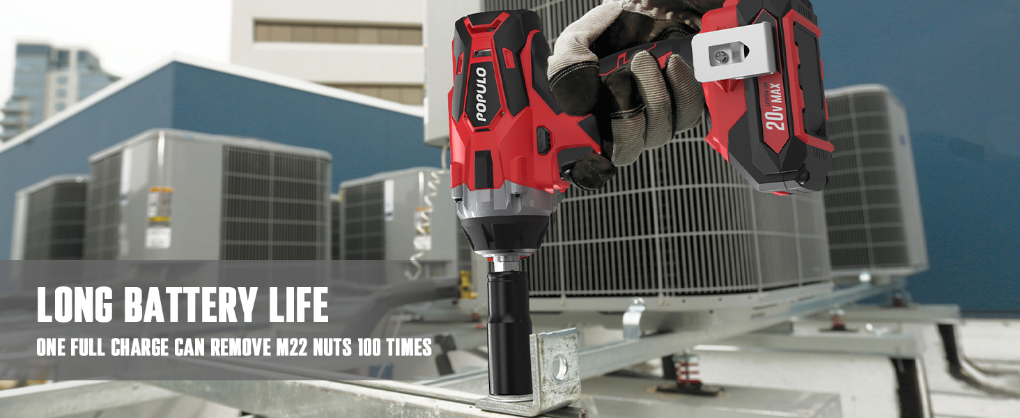 【Long-lasting Battery Life And Lightweight】With a weight of just 2.68 pounds, it will not put too much strain on the hands during use, making it convenient to carry and store.And one fully charged 2.0Ah Lithium ion battery can tighten or remove the M22 bolts over 100 cycles, which can meet most of your household needs.