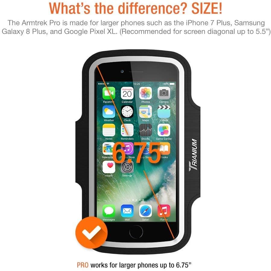 Accommodates Most Cases: The Armtrek Pro is specially designed with added space to easily fit most large phones, including iPhone 6/6s/7 Plus/8/x and Samsung Galaxy S9 / s9+ / S8 Plus S7 Edge/Note5 8 9 AND their protective cases. Common case brands that are compatible include Otterbox/Lifeproof. Please read the description to see complete compatibility.