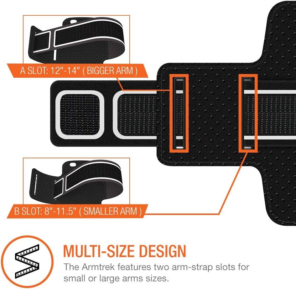 PREMIUM MATERIALS & Universal Sizing: Made of stretch resistant neoprene. The Trianium ArmTrek Armband case for large smartphone easily bends, flexes, twists, and folds without warping. Multi-slot Adjustable Velcro iPhone Armband Will Fit Almost Any Arm Size Up To 14".