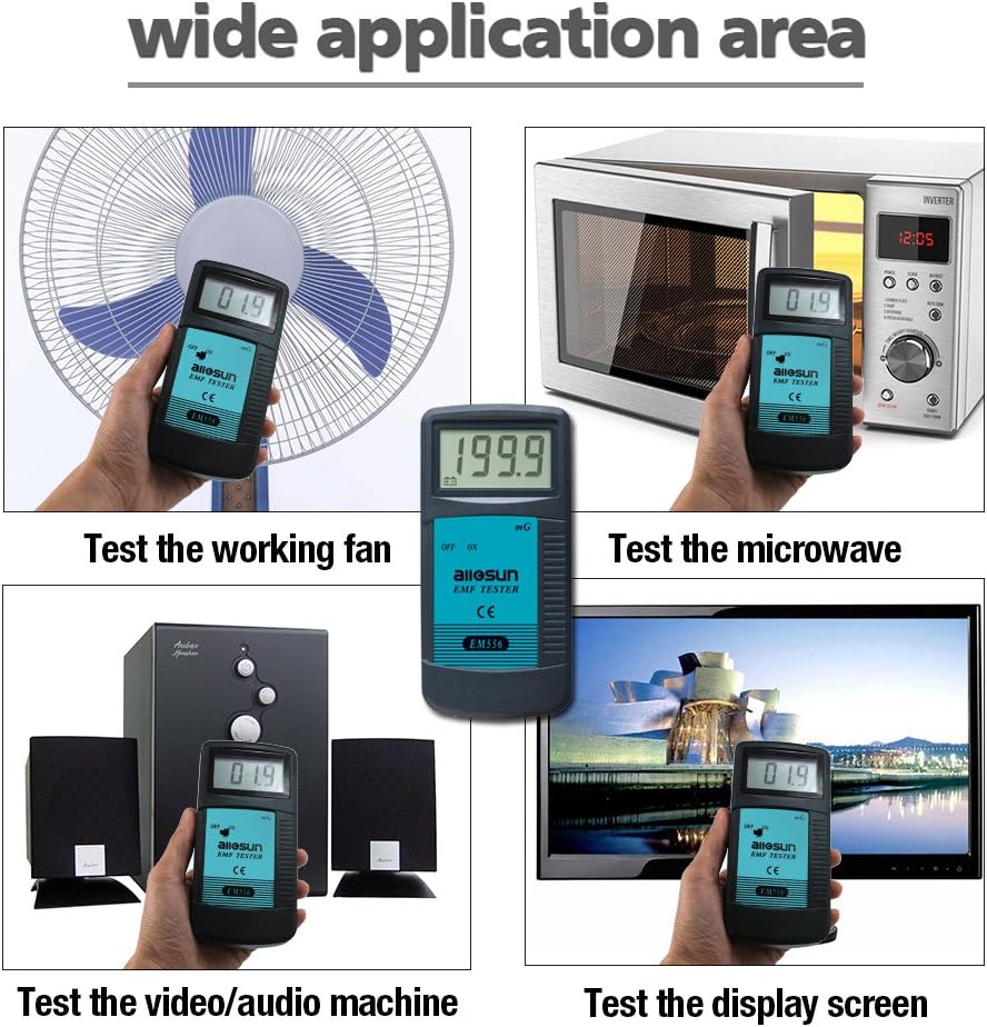 - EMF field tester perfects for measure radiation emitting from any household appliances,such as microwave,cell phones,TV,laptops,wifi towers etc