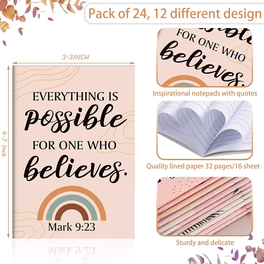 Tatuo 24 Pcs Bible Verse Notebook Religious Motivational Notepads Small Pocket Journal Inspirational Notepads Christian Scripture Notebooks for Office School Supplies, 3.3 x 4.7 Inch (Rainbow)