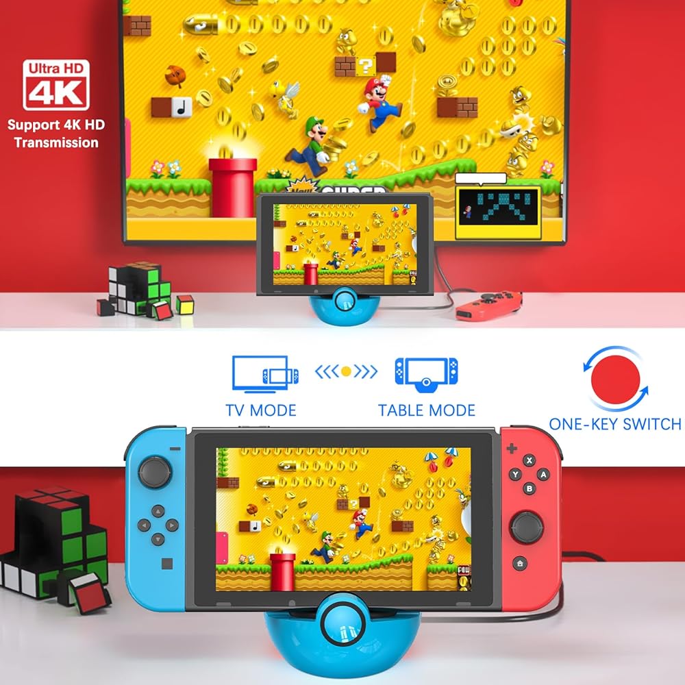 【One-key for switch】 The switch docking station can be easily and freely switched between the Table-top mode and the TV mode with the switch button on the switch dock. The HDMI port of the dock supports the TV's 4K/1080P display, bringing you a high-definition gaming experience. Please remove the protective case of the game console before use.