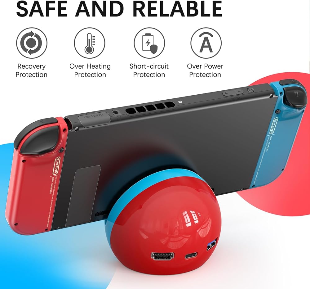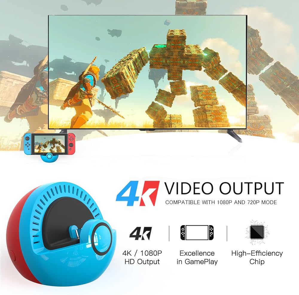 【Play while charging】 The built-in high-efficiency chip in the switch docking station improves heat dissipation by 30% and fully supports TV mode and simultaneous charging. For better protection, please use the official Nintendo AC adapter when playing while charging, which is safer for switch consoles.