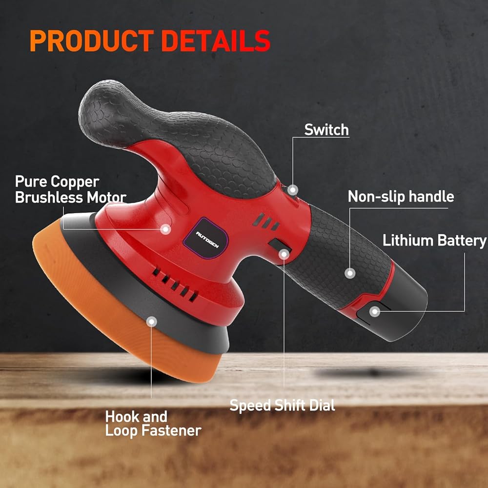 𝐏𝐎𝐑𝐓𝐀𝐁𝐋𝐄&𝐋𝐈𝐆𝐇𝐓𝐖𝐄𝐈𝐆𝐇T: AUTOGEN cordless buffer polisher is only 2.3 pounds compared to traditional buffer polishers for easy portability and storage, 0.35 inch dual action orbital ensures an even polishing surface, ideal for handling car details/scratch.