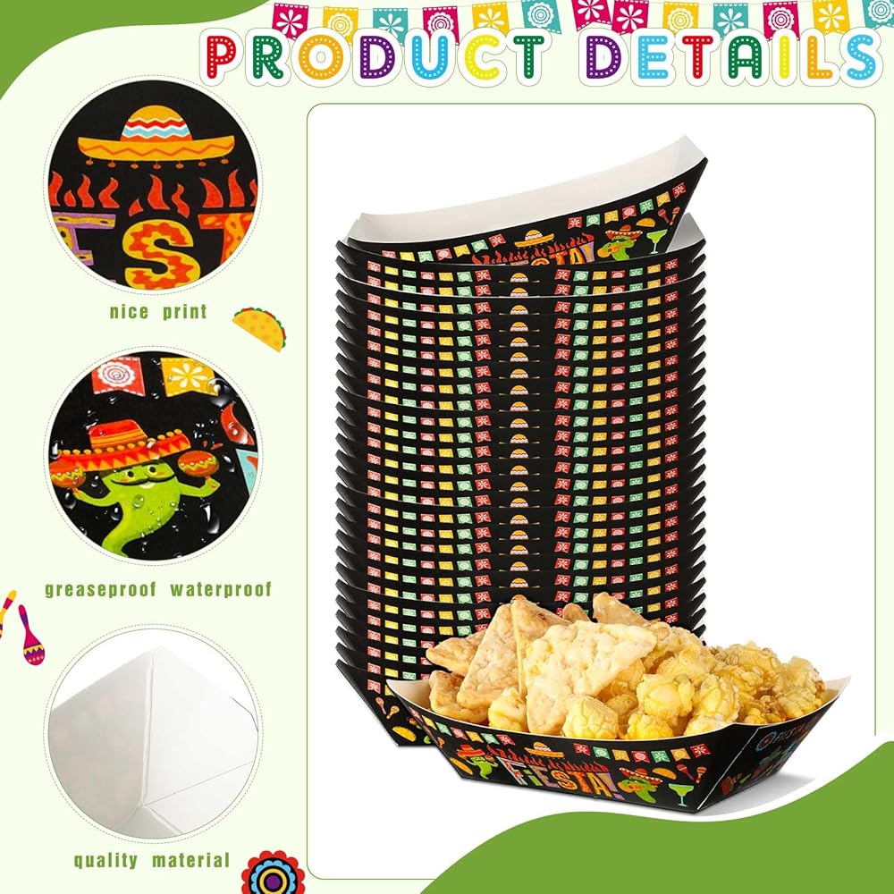 The party trays for serving food are ideal additions for birthday, Cinco de Mayo, Mexican themed party, Halloween and more, adding festive ambiance.