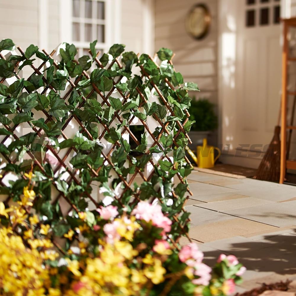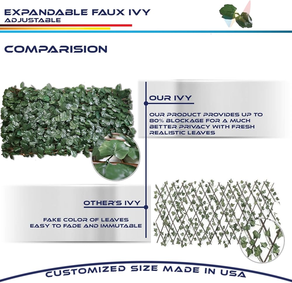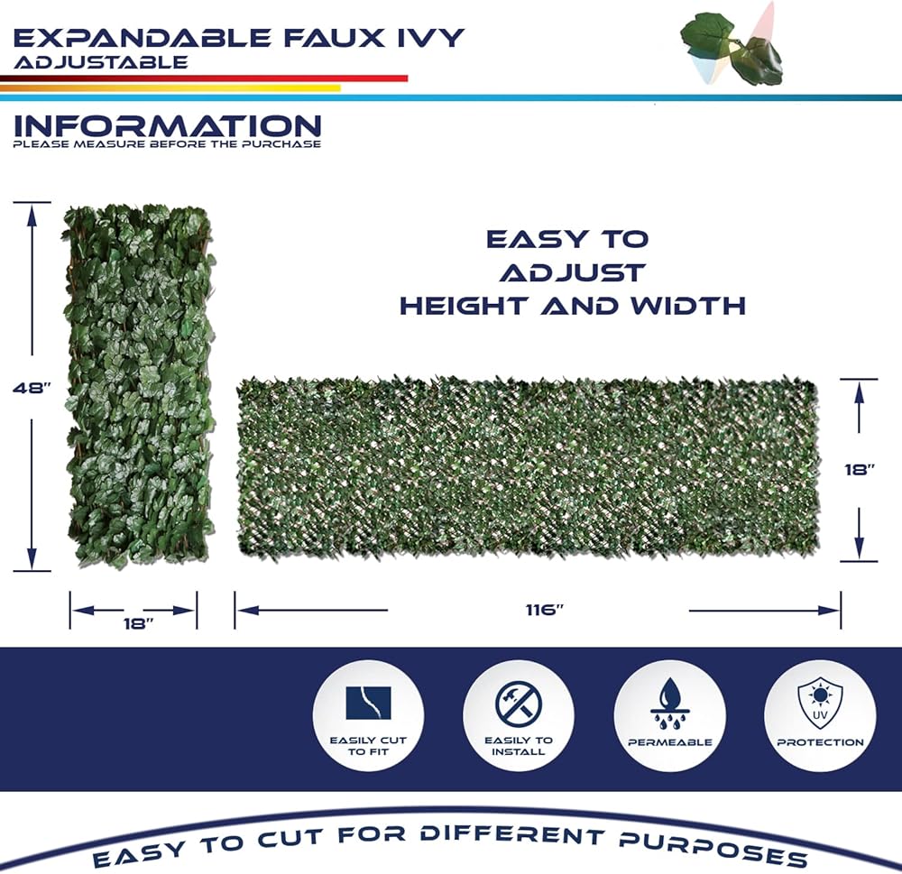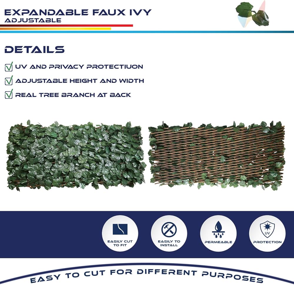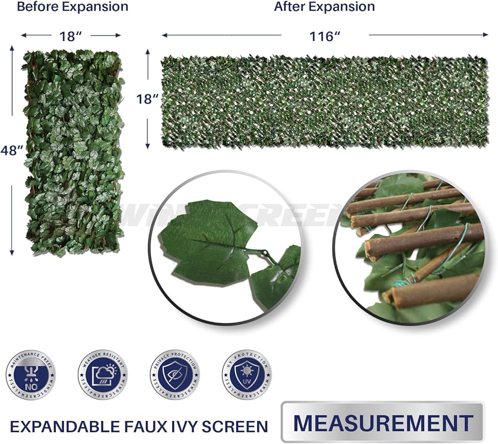 HIGH QUALITY MATERIAL - Our expandable fence screen is made of real woods with artificial leaves. Leaves are made with UV stabilized polyethylene material so it's sunlight and water-resistant.