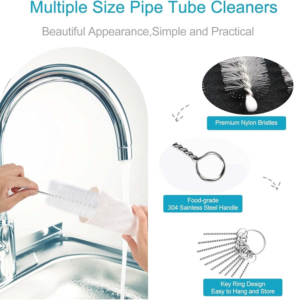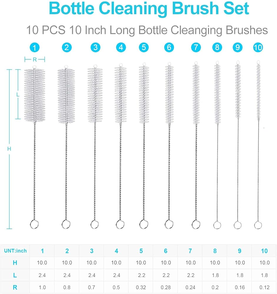 Straw cleaner brush, pipe tube cleaner brush set: small bottle cleaning brushes for sippy cup straw teapot nozzle, this item can help with cleaning all those hard to reach areas, whether its bottles, pipes tubes, these can not only clean them with ease, but also be non-marking as well.The Superb Brush Set that Cleans Even the Tightest of Spaces.we developed this 10-Piece Tube Cleaning Brush Set to help you keep things cleaner and nicer with less effort. Designed with a strong, flexible stainless-steel wire handle and high-quality nylon bristles these cleaning brushes let you clean more effectively, so you can keep your home or your personal items pristine.