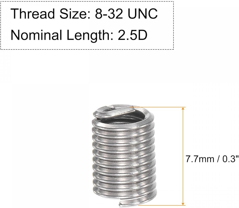 Wire Thread Inserts: Thread Size: 8-32 UNC; Nominal Length: 2.5D; Overall Length: 7.7mm / 0.3"; Type: Helical. Great for thread repair and maintenance work.
