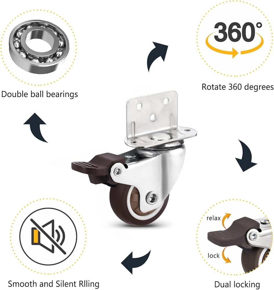 🌴Durable Construction: Our swivel plate casters are crafted from durable thermoplastic elastomer (TPE) and high-quality steel, featuring a rust and corrosion-resistant chromium plating process, ensuring long-lasting performance and reliability.