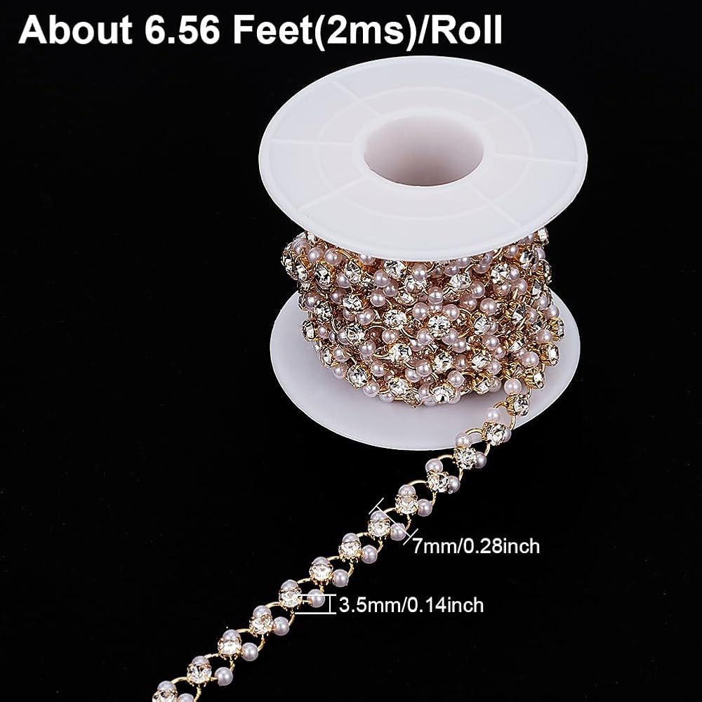 Package Included -- You will receive 2m pearl beaded rhinestone trim. Size is about 6.5-7mm/0.26-0.28 inch wide, 3.5mm/0.14 inch thick, about 6.56 feet(2m)/roll. Please check the size to see if it fits your needs before ordering