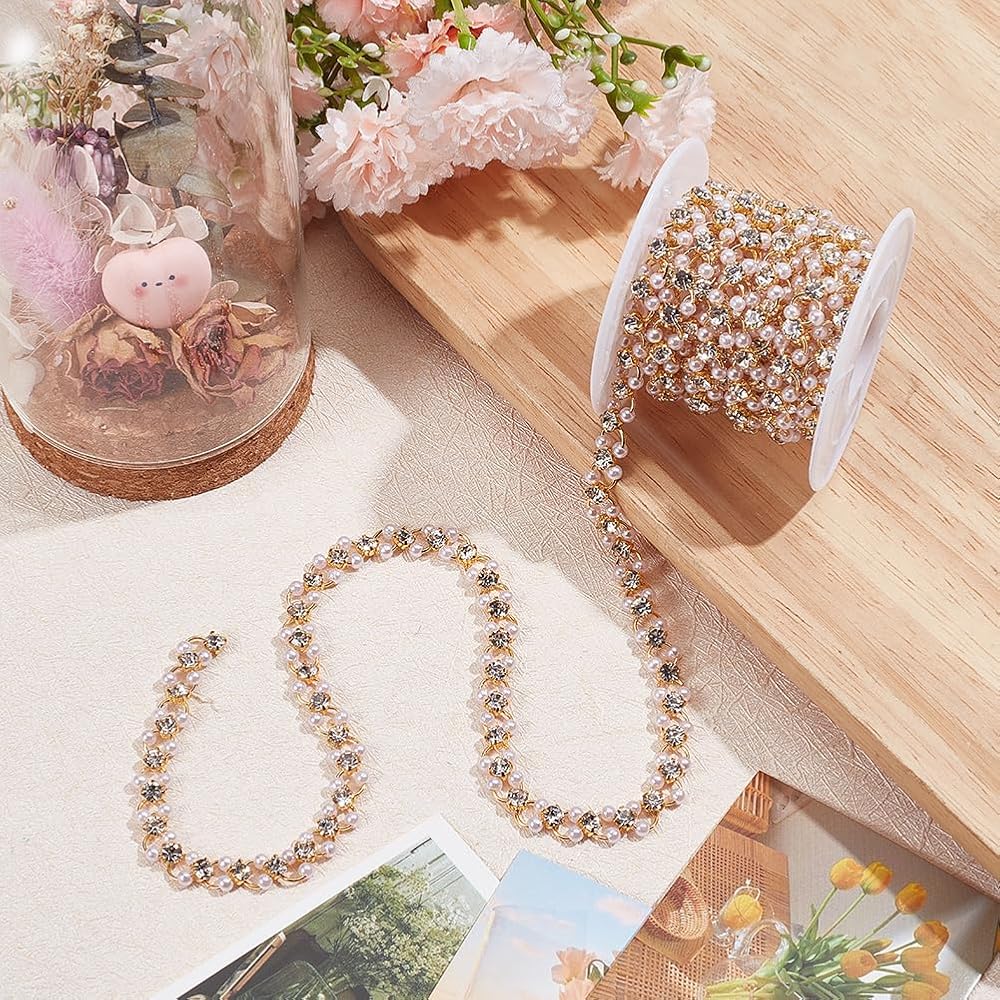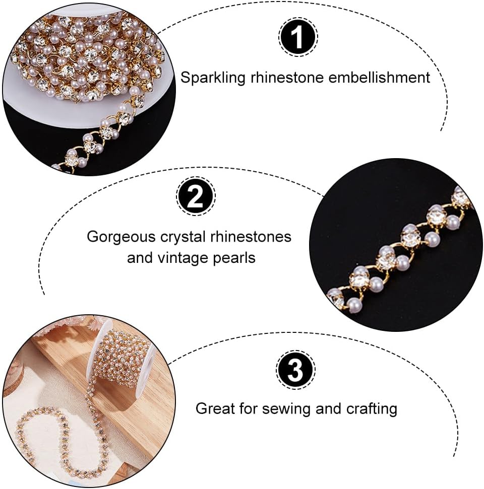 Wide Range of Uses -- Rhinestone pearl trim is a great decoration for dresses, outfits, shoes, handbags, photo frames, bouquets, bottles, cell phone cases, bridal belts, wedding dresses, hair clips, bridal champagne, cakes and all kinds of holiday celebrations. You can use different ornaments for different occasions to add a touch of color to your look