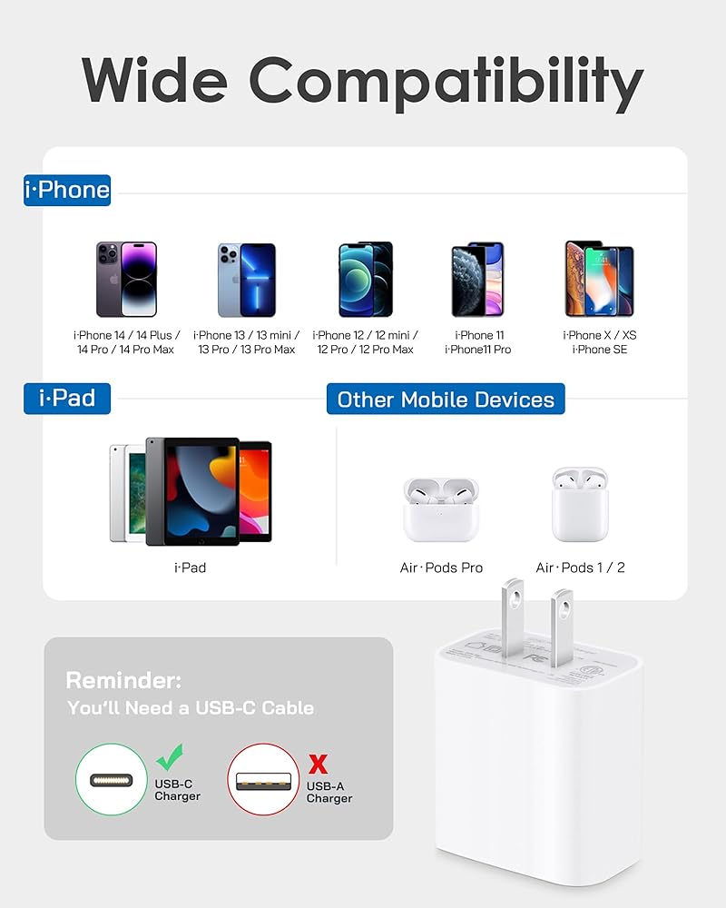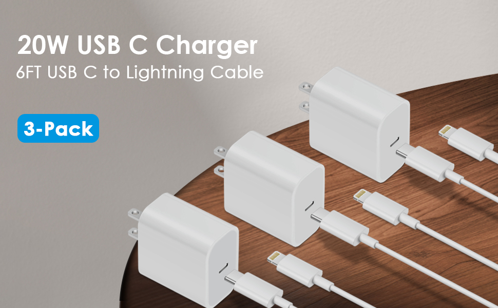 i Phone Charger Fast Charging, 3PACK 20W USB C Wall Charger Block with 3PACK 6FT Fast i Phone Charger Cord Compatible with i Phone 14/13/12/11 Pro Max,Mini,Pro/XR/iPad