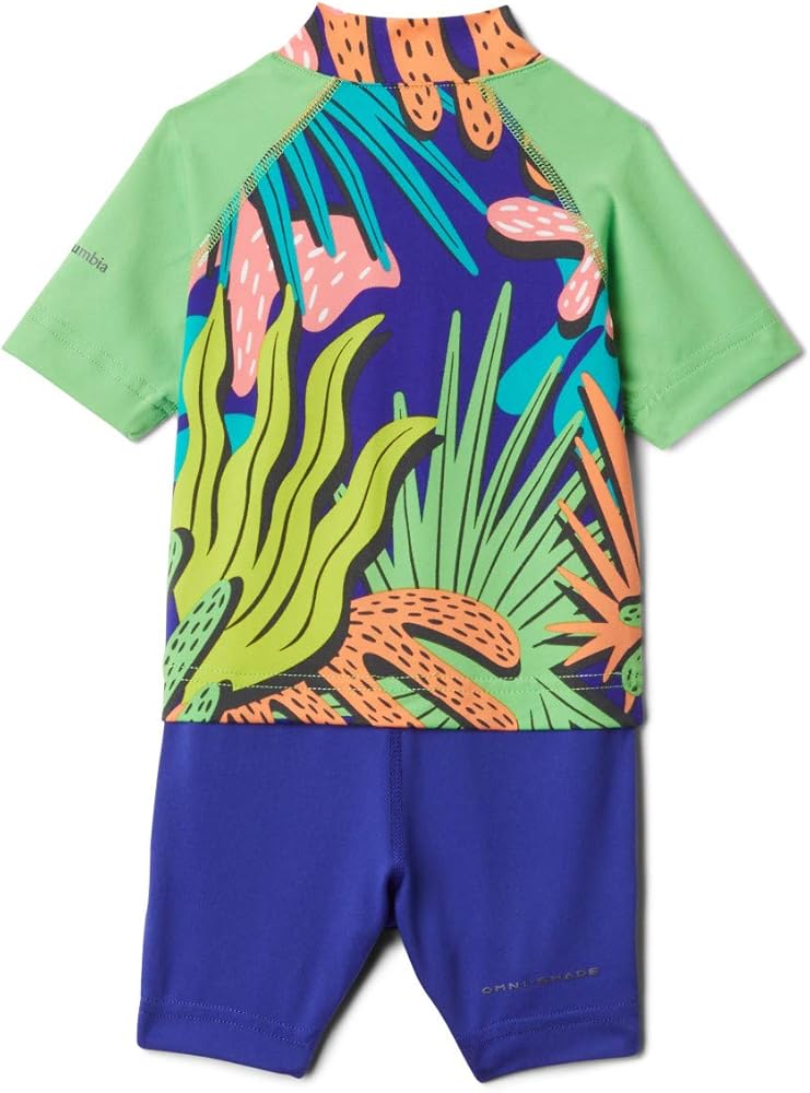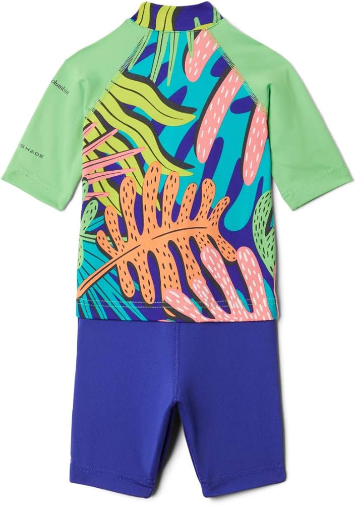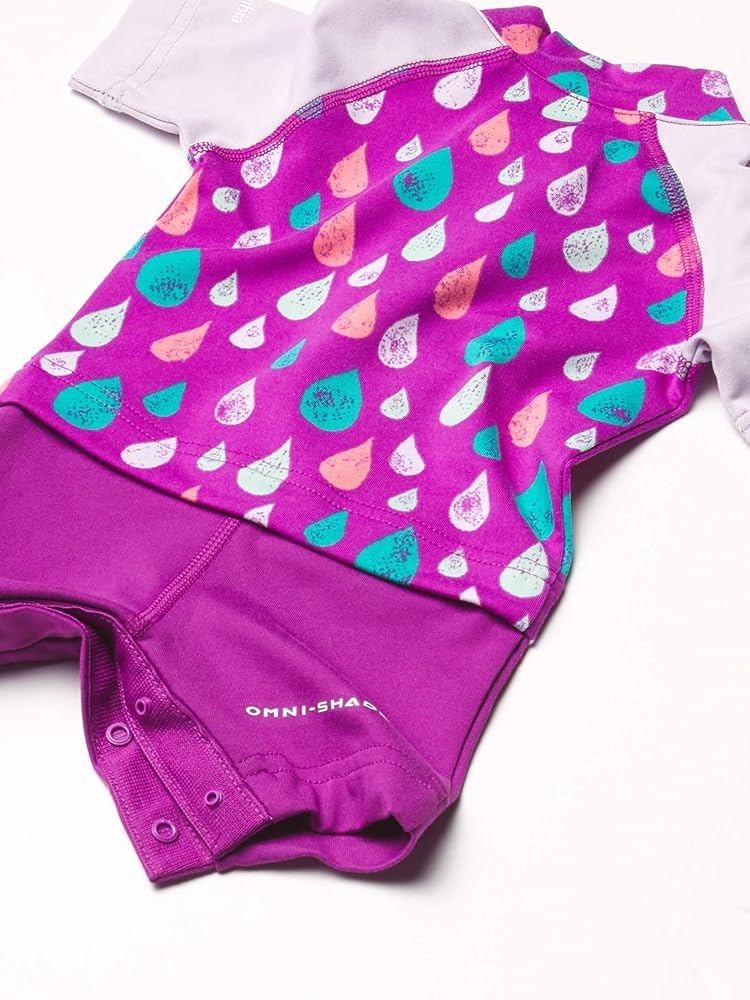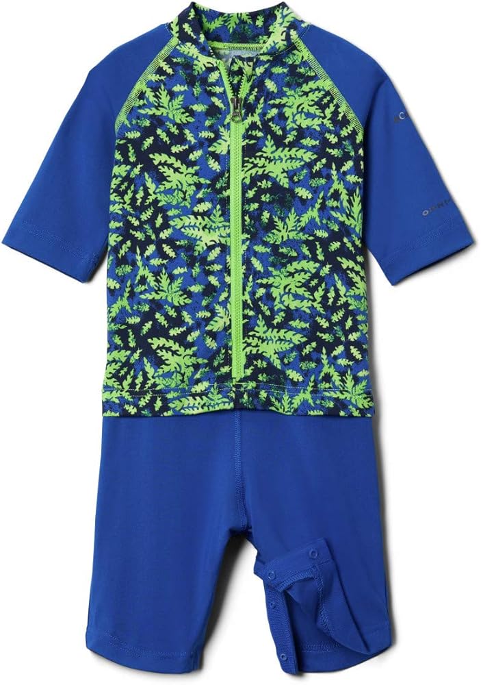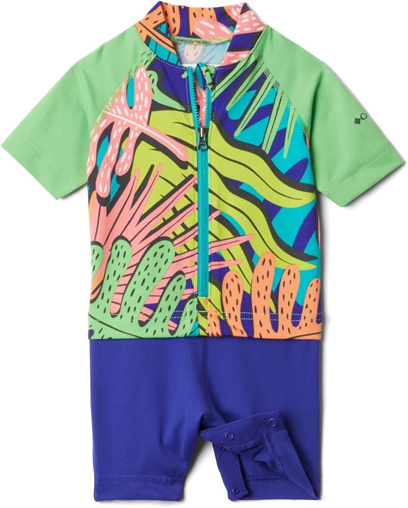 With UPF 50 sun protection and moisture-wicking technology, this colorful suits keeps your future explorer covered and cute. Perfect for active infants and toddlers. This sun suit is made from soft polyester blend, designed to offer two-way stretch for extended comfort. A stylish contoured collar offers extra coverage along the neck, while the snap closed legs makes for easy diaper access when needed. Your little ones will be all smiles when they charge ahead in this outfit. Columbia offers this suit in a multitude of colors, patterns, and sizes, from newborn through toddler age. To ensure you get the right size, please refer to our sizing chart for your child's size and weight range.
