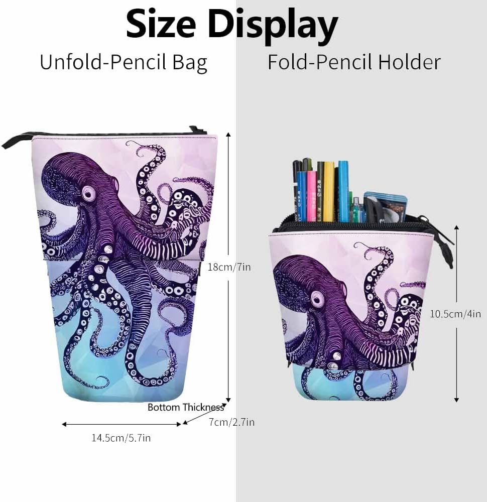 Enough Capacity: Unfold size: 7x5.7 x 2.7 inch. Fold size: 4x5.7x2.7 inch. The special retractable pencil bag can put in your daily bag and also has enough capacity to storage several pens, pencils. Perfect gift to your friends on birthday, any important events.