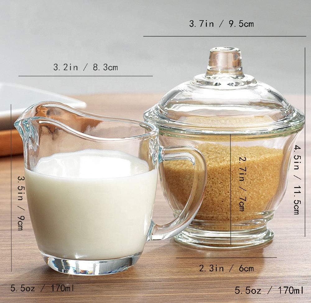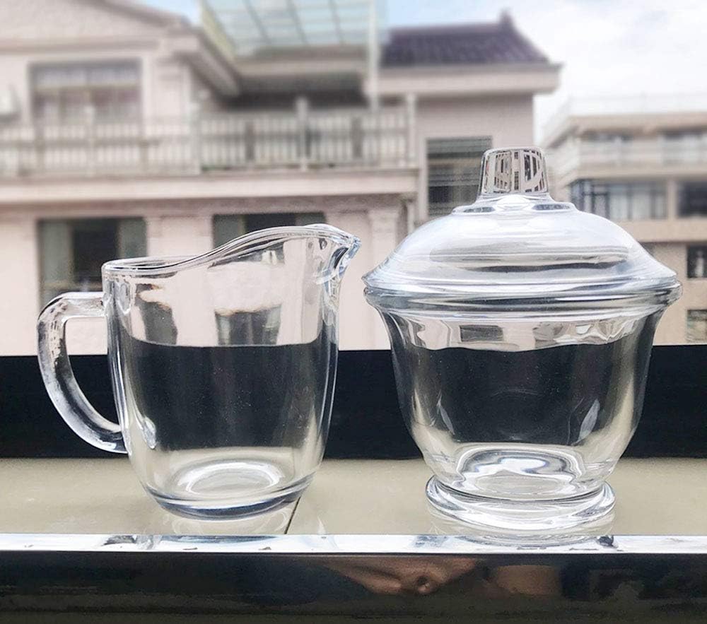 FUYU Glass Creamer and Sugar Set with Lid, Coffee Serving Set