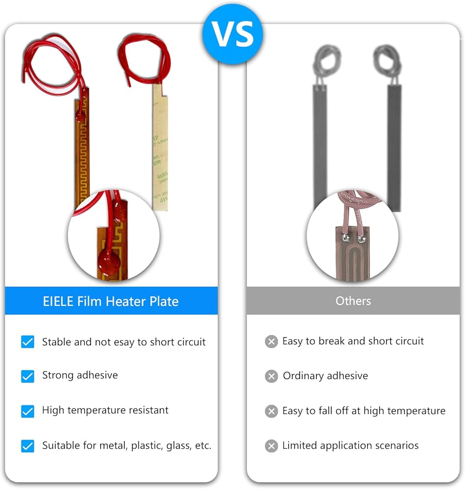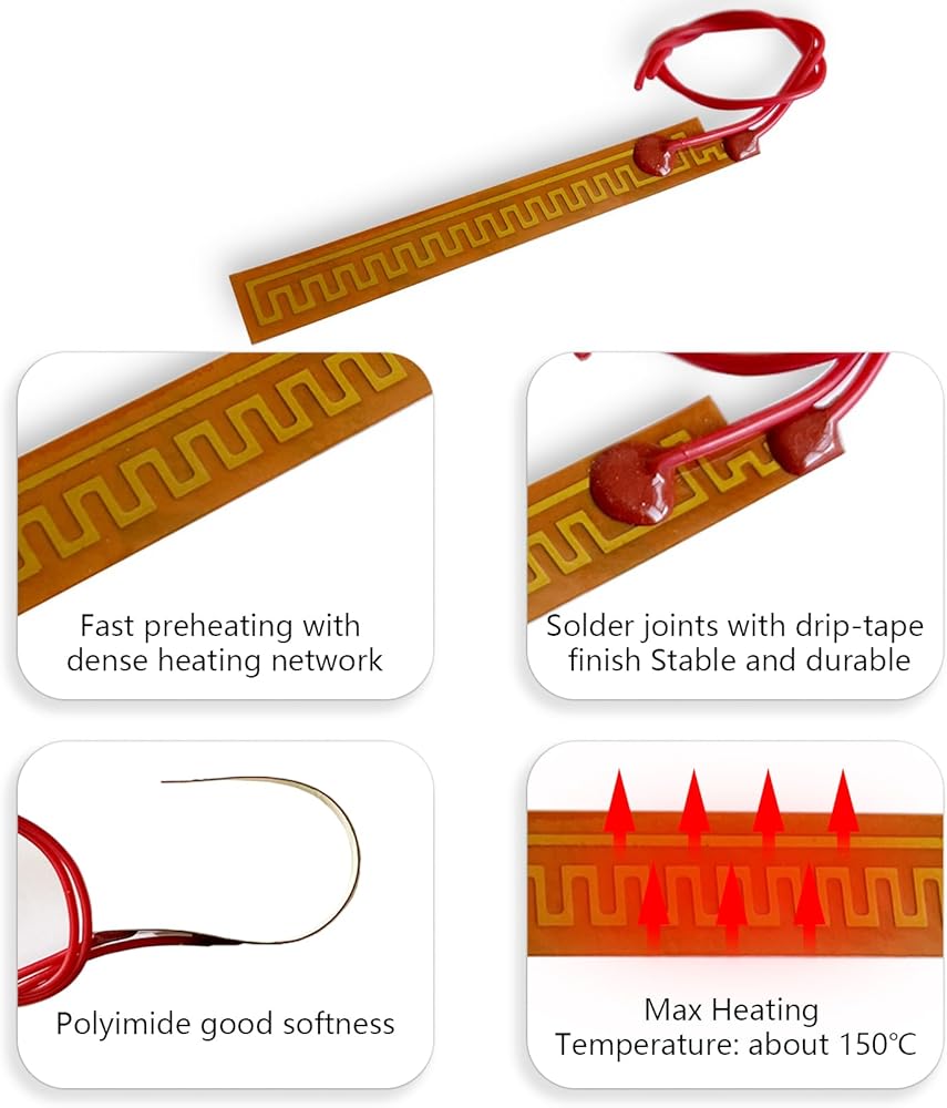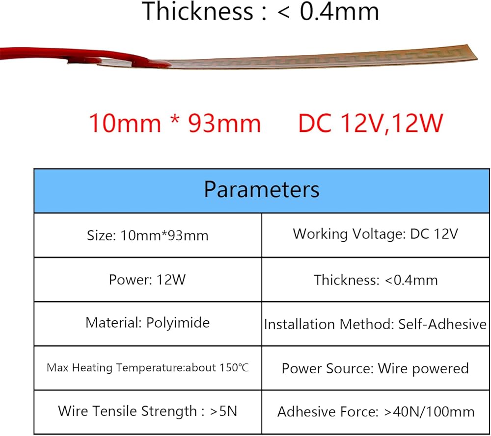 【Note】The heating film itself can not control the temperature, you can use it with a temperature controller. Film size: 50*100mm, Operating voltage: 12V ,Power: 14W,Maximum temperature: about 150℃.