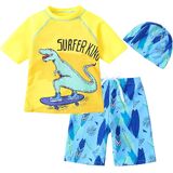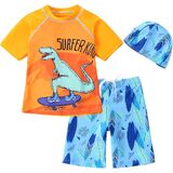 CUTE SWIMSUITS FOR BOYS:Toddler boys swim sets,boys swim outfit, 2t swimsuit boys,boys swim trunks with boys swim shirt,4t swimsuit boys,cartoon dinosaur pattern printed,dinosaur bathing suit, rash guard swimwear,rash guards sunsuit,short sleeve,elastic 3t swimsuit boys.