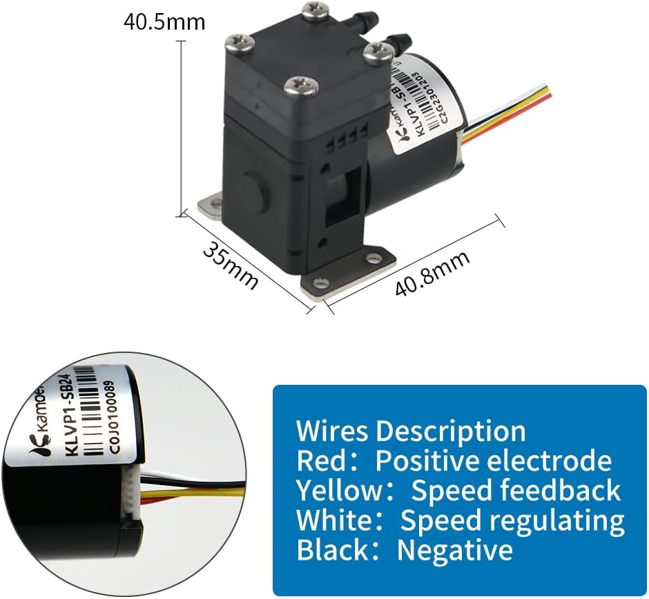 Kamoer KLVP1 Small Vacuum Pump 12V DC brushless Motor Diaphragm air Pump 1.2L/min for Gas Collection,Negative Pressure Pump Support PWM 0-5V Speed Control
