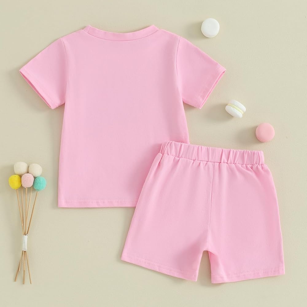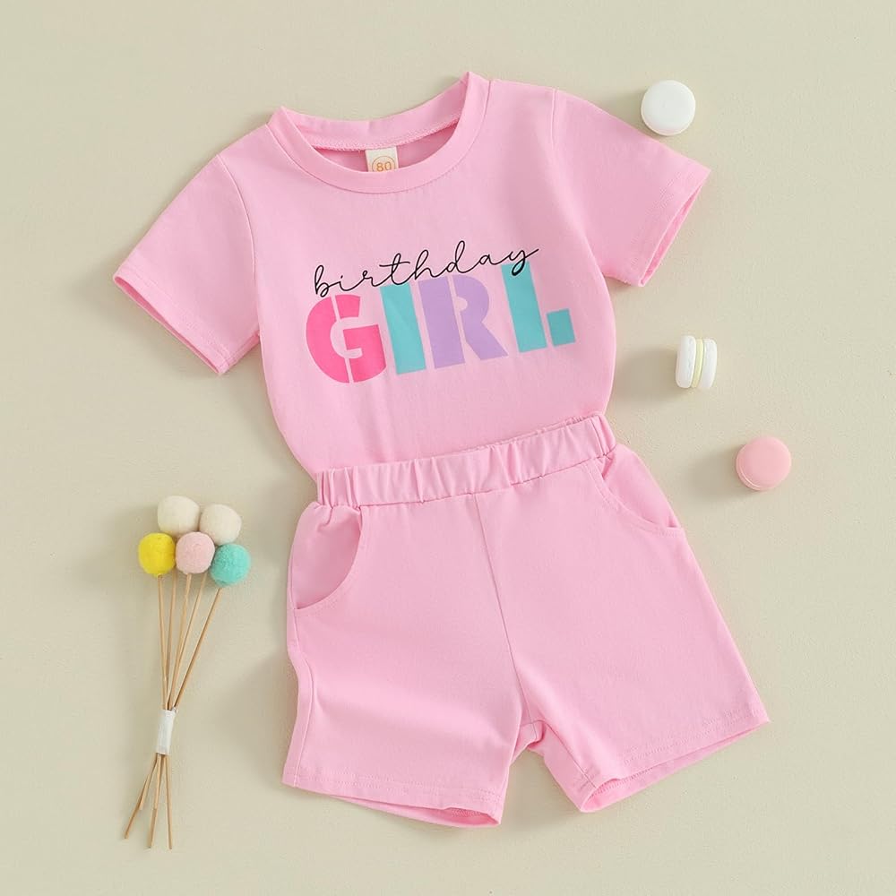 SOFT MATERIAL: Birthday girl shirt and short set.Toddler girl pink shorts set ,Baby girl birthday outfit is made of 95% cotton 5% spandex, soft, breathable and skin-friendly for baby's delicate skin, your baby will feel comfortable and cool in summer.