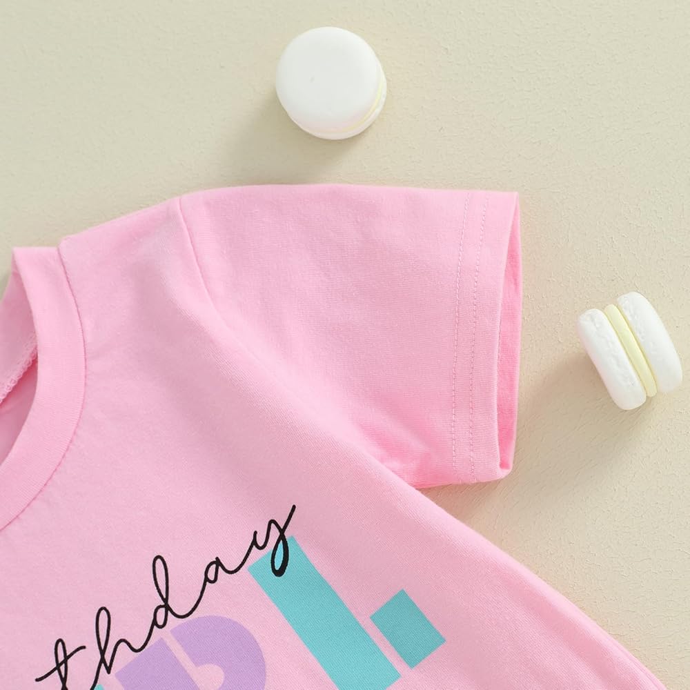 FEATURES: Baby girl birthday outfit with letter print and birthday theme . Baby girl top shirt with short sleeves and round neck design. Baby girl shorts with pockets, featuring elastic waist design, exquisite details make your little one cute and charming. Best girl Birthday Gift for party .