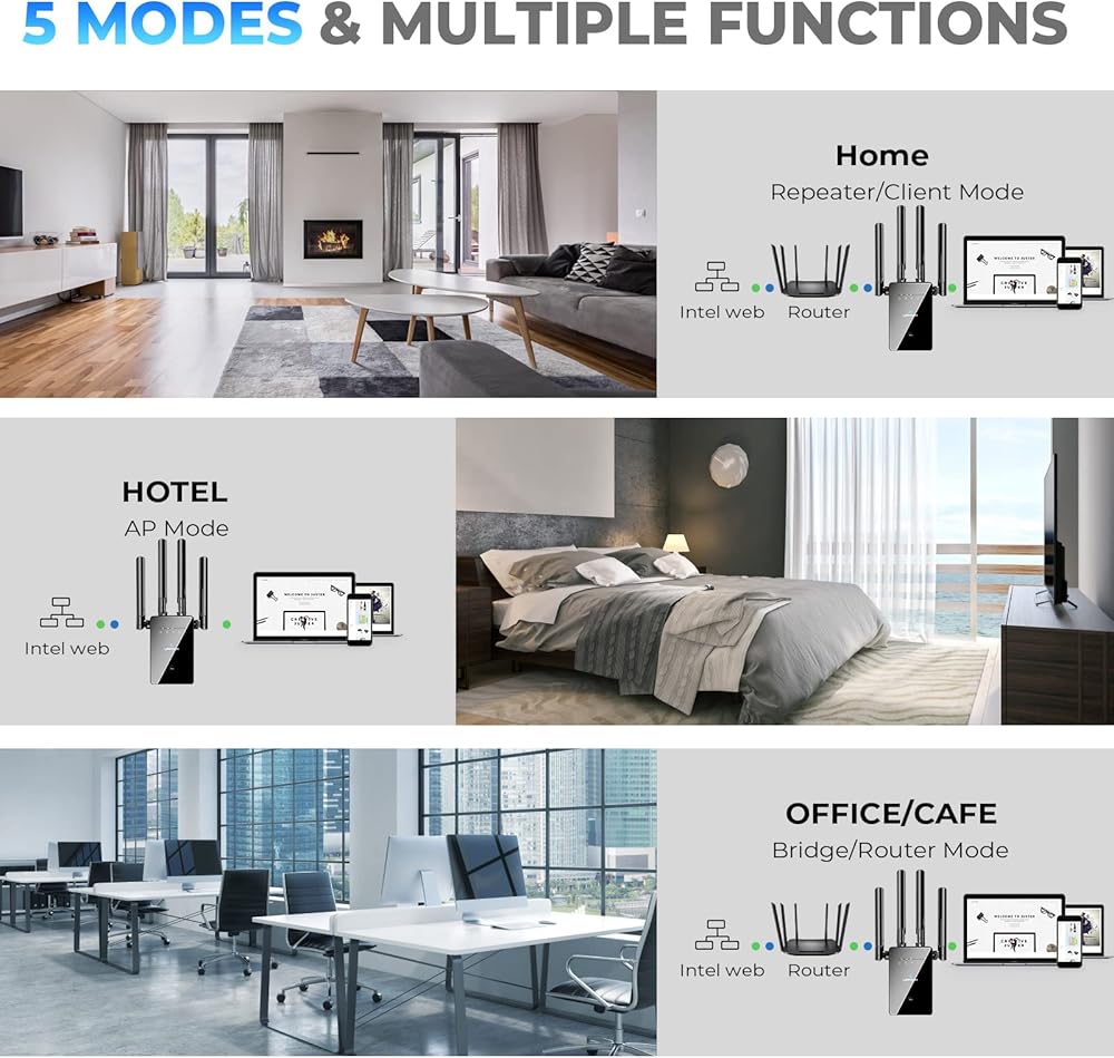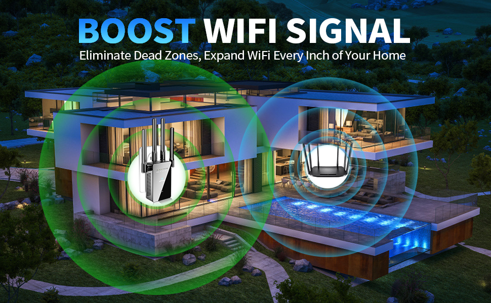 Full Signal Cover up to 9500+ Sq ft: Eliminate wifi dead zones, 2024 wifi extender help extend the signal to every corner of your home, including the yard, bedroom, basement, garage,delivers ultra-stable bandwidth for online gaming, video conferences and even streaming 4K HD video.