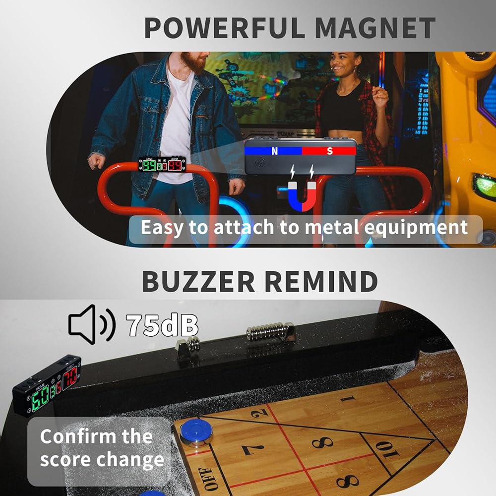 【Portable Scoreboard & Powerful Magnetic】:Our scoreboard is designed to be easily carried in your bag or pocket,take it with you to sports events, competitions, or even casual gatherings.With build in powerful magnetic that you can conveniently place the scoreboard anywhere without any trouble.When the score changes, scoreboard provides a sound reminder, ensuring everyone is aware of the score change. You can adjust the volume to suit different environments and preferences.