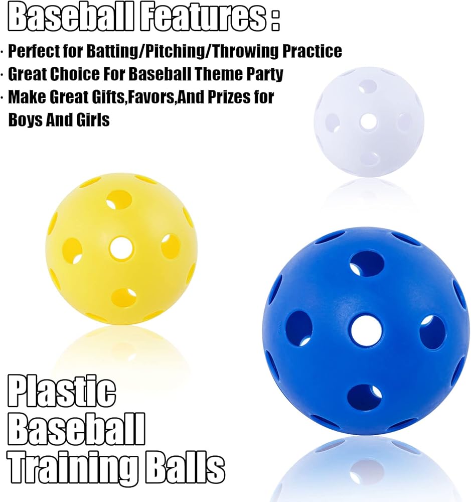【SCIENTIFIC 26 HOLES DESIGN】: Speacial 26 holes design provide low flight resistance, true spin and accurate distance. Lightweight and perforated design makes these balls perfect for batting tee or soft toss. Our safety baseballs are very suitable for beginners and kids to practice, no need to worry that hard baseballs will hurt them.