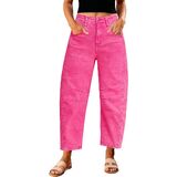 Barrel Jeans Inseam - 26''. These high rise jeans for women feature a high rise, zip-fly and one-button closure, wide barrel leg, functional pockets, washed and whiskers details, seam details, cropped length, and stretchy denim fabric.