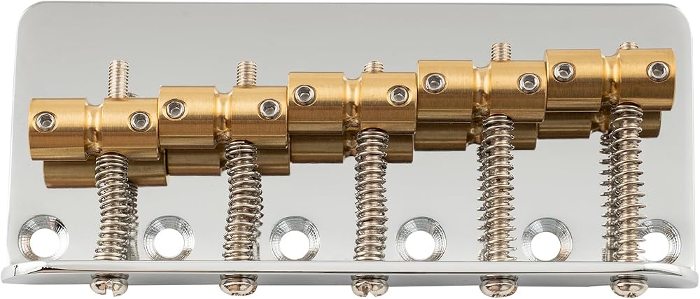 Musiclily Pro 18mm String Spacing Classic Standard Top-loading 5-String Bass Bridge with Brass Saddle Steel Plate, Nickel.